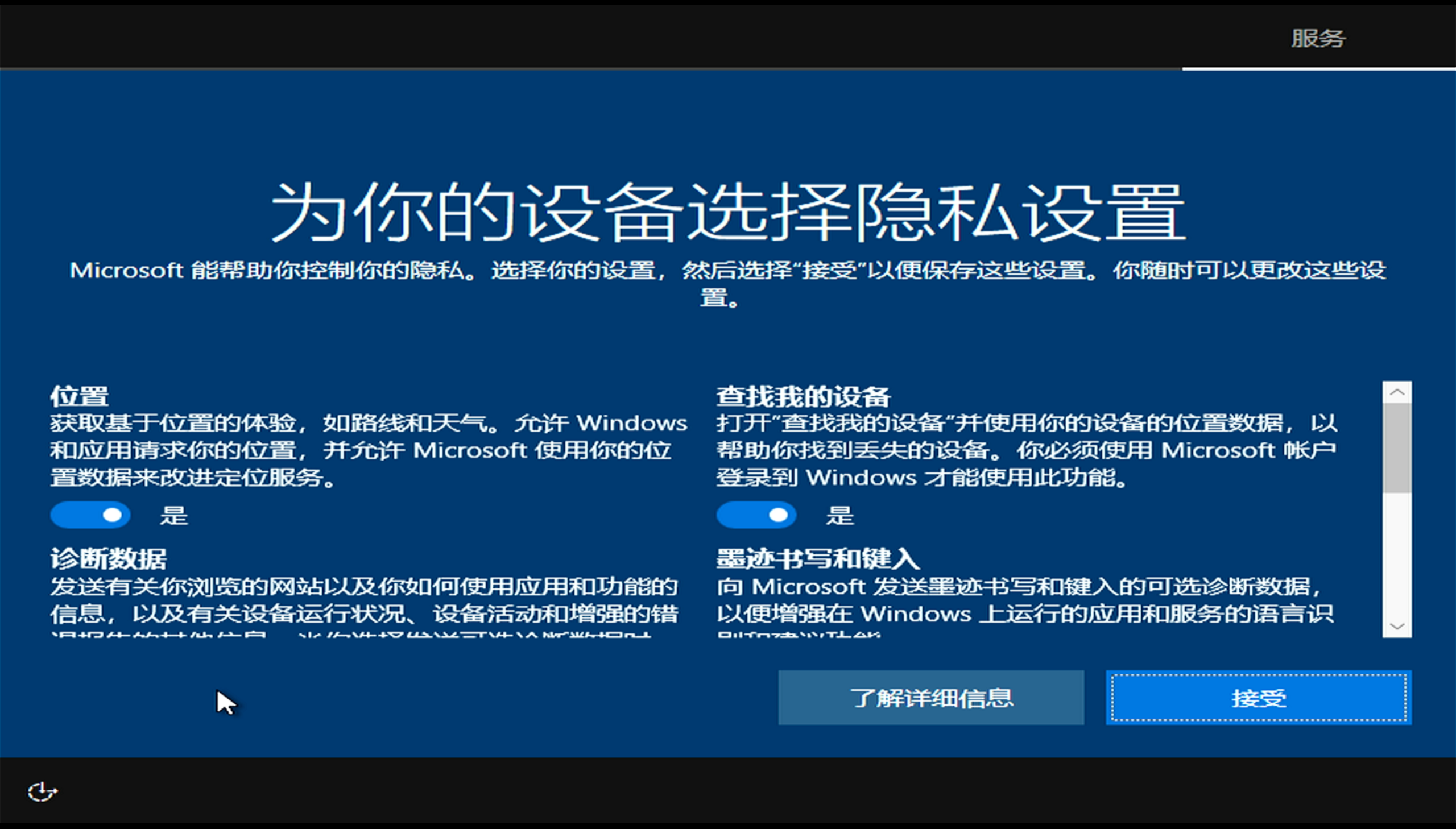- 选择隐私设置,然后点击“接受”。也可以去掉所有选项之后点击“接受”