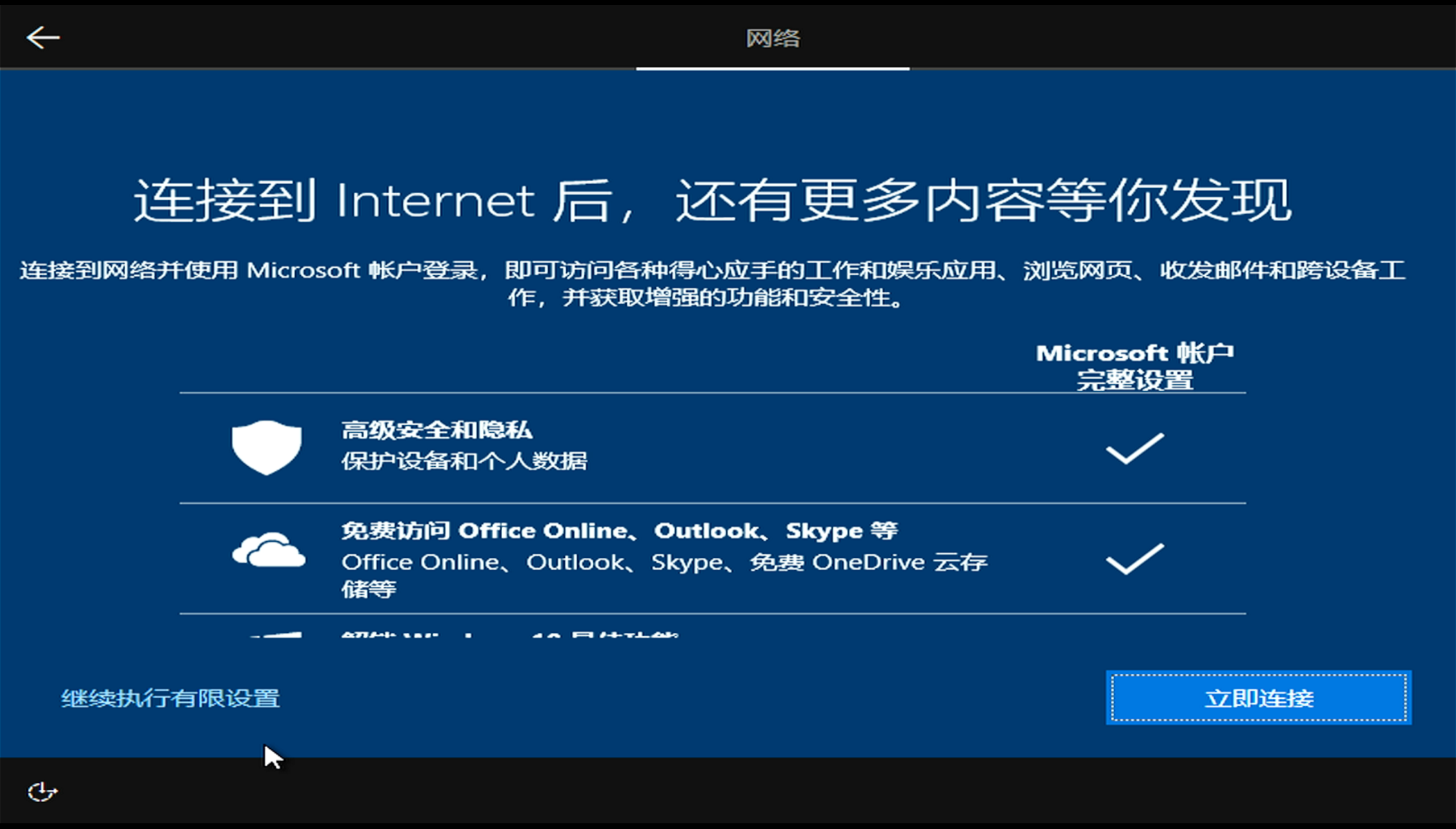 - 这里可以选择“跳过”。但点击“跳过”前,请确保电脑没有链接至网络(如 WiFi 或有线链接)